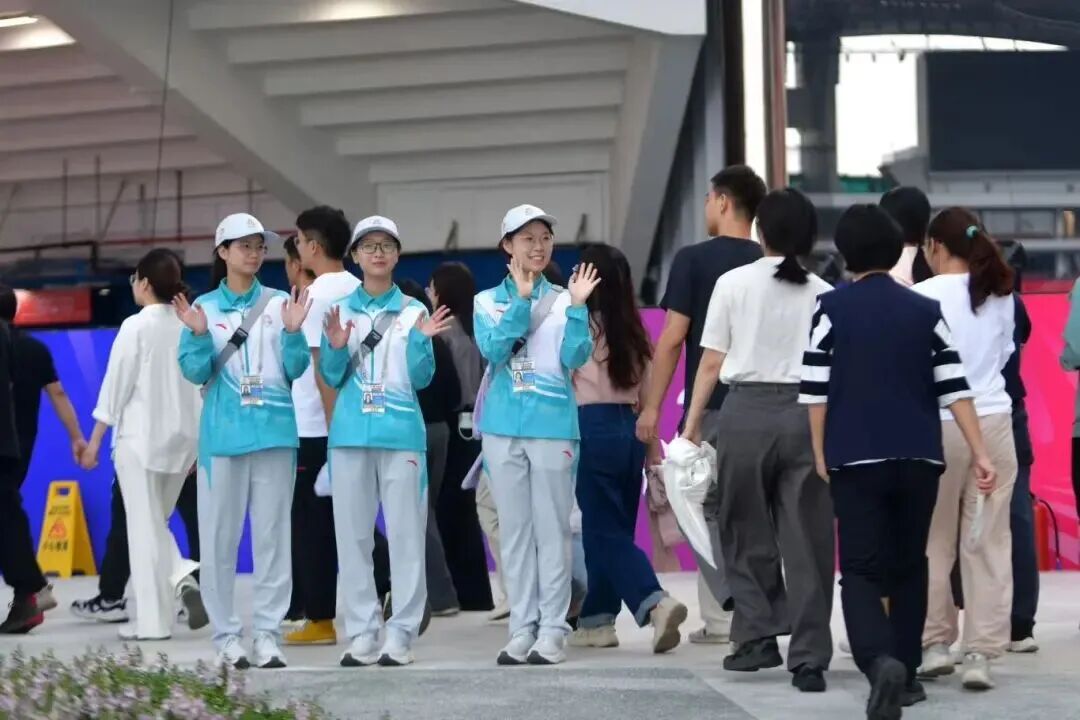 当暖场音乐在场内响起时,广东工业大学志愿者陈海琛正和队友坚守在奥体中心外场的岗位上。“那一刻,内心是自豪的。”他说,虽然看不到演出,但想到观众正在享受精彩的表演,而这份体验中有自己贡献的一份力量,就感到特别幸福。